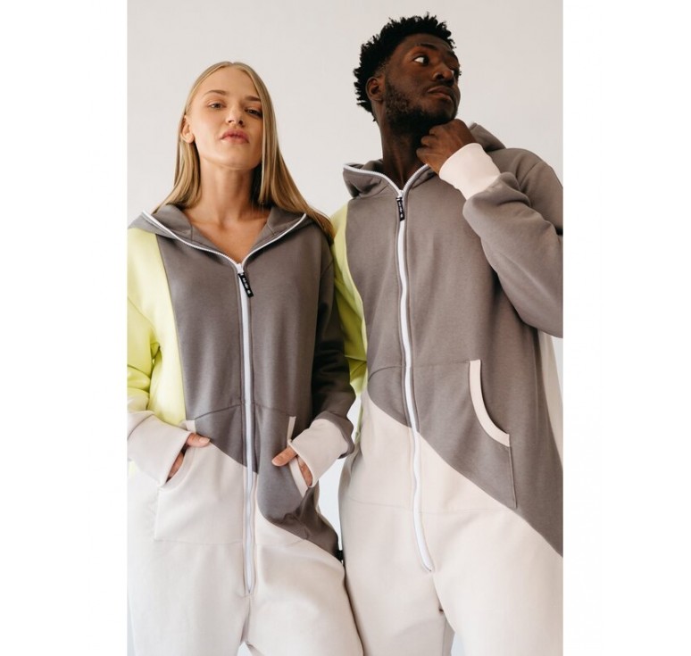 Ar esate pasiruošę smagiai praleisti laiką vilkėdami šį nuostabų geltonosneoninės, pilko akmens ir balto smėlio spalvos laisvalaikio kombinezoną? Jis ne tik gražiai atrodo – galime garantuoti, kad jums patiks būti su šiuo itin patogiu kombinezonu. Jūsų odai patiks kvėpuoti, nes kombinezonas pasiūtas iš 92% medvilnės ir 8% elastano bei poliesterio. Vilkint jį jausmas lyg dėvint antroją odą – galite jame atsipalaiduoti arba bėgioti kaip mažas laimingas vaikas. Su juo galėsite veikti absolučiai bet ką, kas džiugina jūsų širdį. Ei, jūreivi!